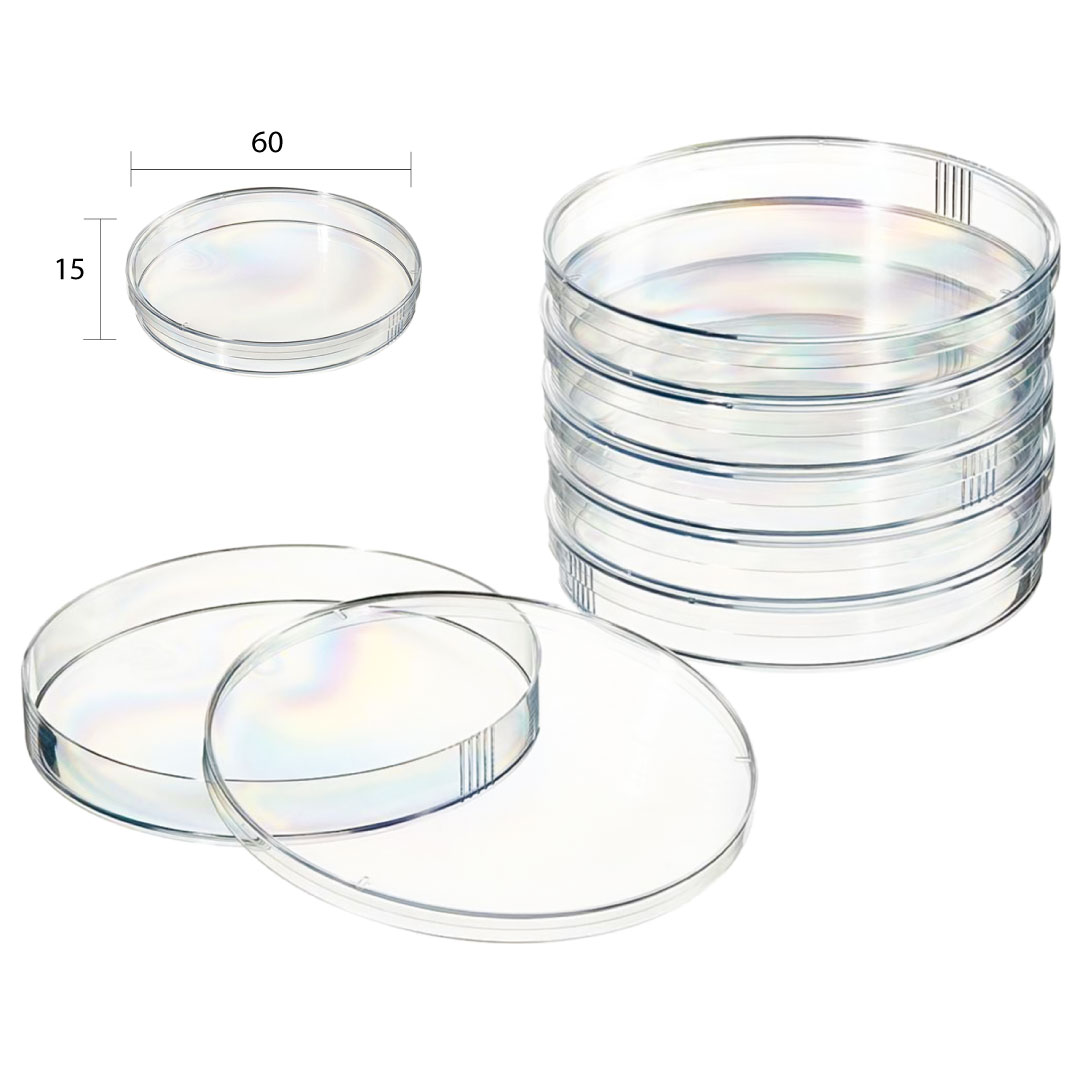 Recipiente utilizado en microbiología para el cultivo y observación de microorganismos. Su diseño plano y transparente permite la preparación de medios de cultivo y el análisis visual del crecimiento bacteriano en condiciones controladas.